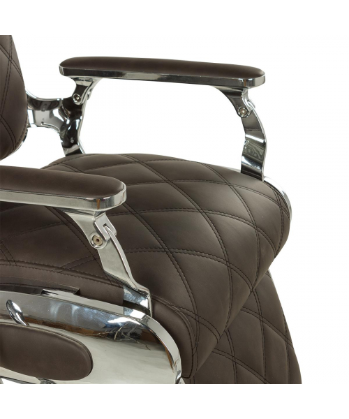 Кресло мужское барбер "Оксфорд" - модель с большим количеством хромированных деталей и прострочкой большими ромбами. Кресло имеет круглое основание и надежную, усиленную гидравлику с декорированной накладкой, которая доступна в трёх исполнениях: хромированный, белый и черный. Все эти варианты отлично впишутся в современный барбершоп. Кресло имеет стандартный функционал для барбер кресел: