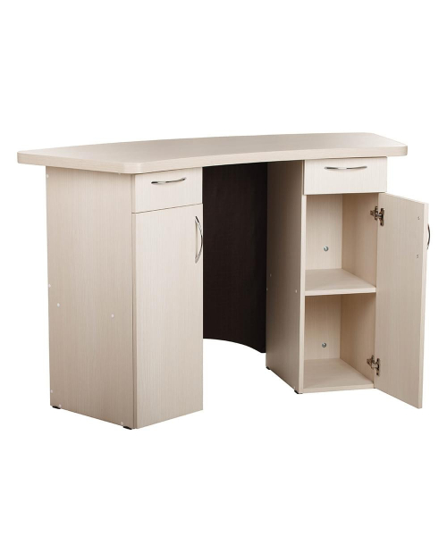 Эргономичная стойка администратора "Орион" выполнена с применением ламинированной ДСП и вставки обтянутой искусственной кожей. Комбинация контрастных цветов яркого кожзаменителя и темного дерева придает неповторимый стиль стойке для администратора. Габариты: 140(Ш) x 85(В) x 60(Г)